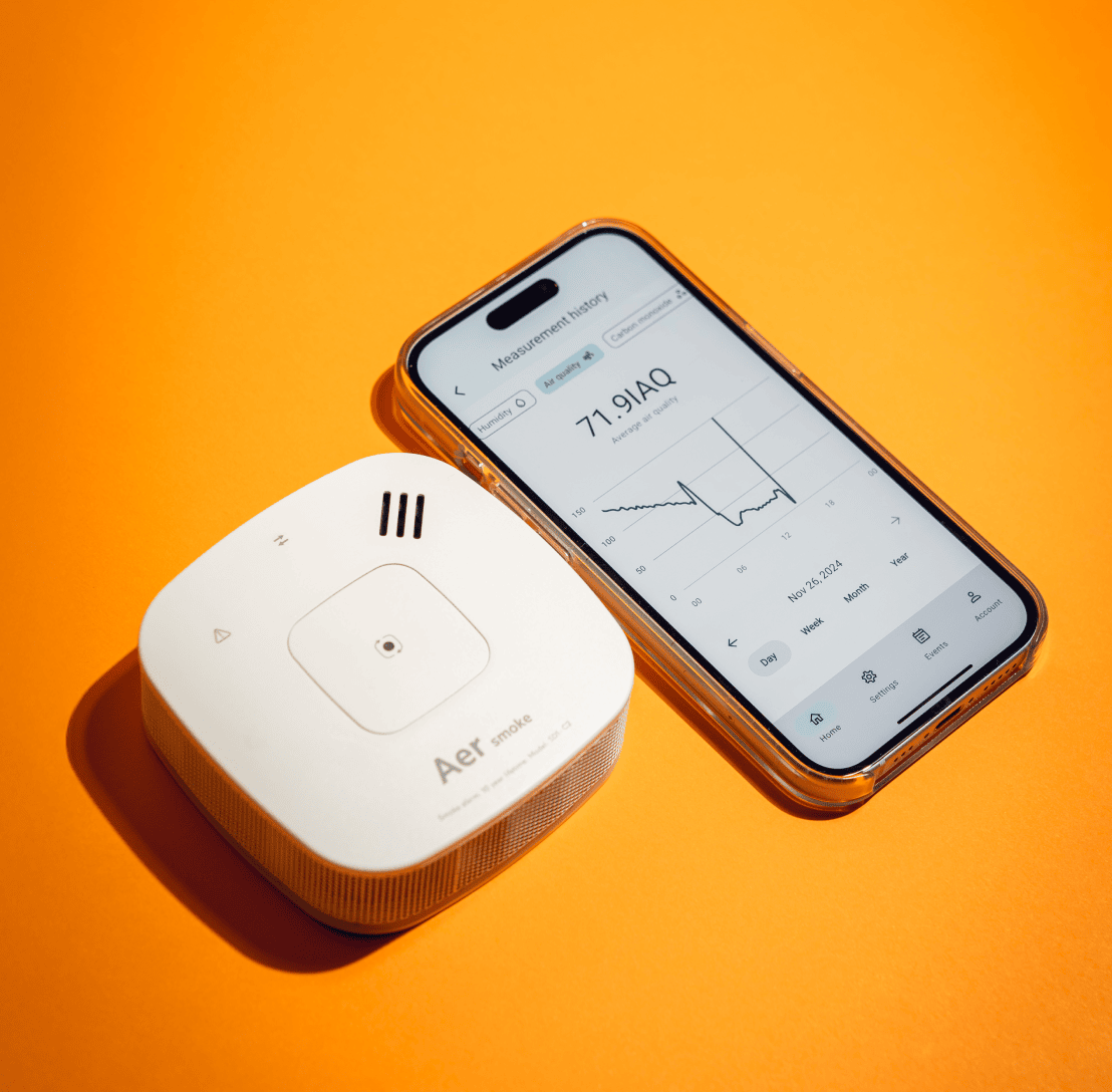 Monitor smoke, air quality, temperature, and humidity with a single device and app.
